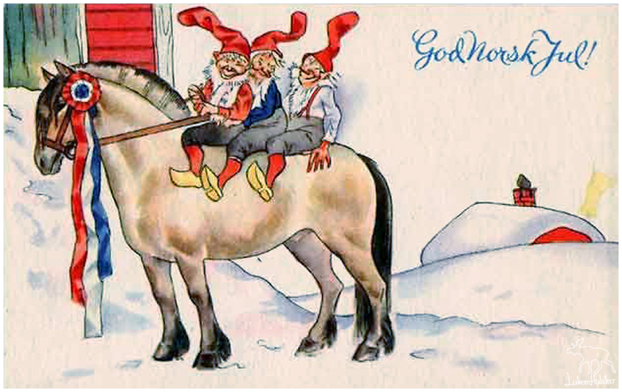 Lorsque les nazis ont commencé leur domination sur la Norvège, un artiste nommé Frank Wathne a produit et largement distribué une série de cartes de Noël portant la mention « Joyeux Noël norvégien ». Celles-ci représentaient le petit Fjøsnisse accompagné du drapeau norvégien. Les cartes ont bien sûr été rapidement interdites.
